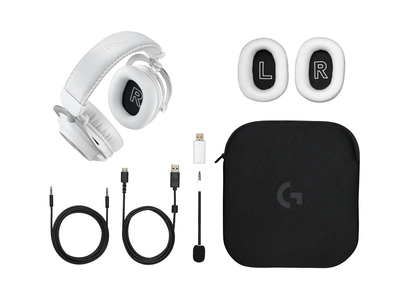 Krijg een concurrentievoordeel met de draadloze gaming-headset LOGITECH PRO X 2 LIGHTSPEED in het wit. Biedt professioneel geluid dankzij 50mm grafenen drivers, betrouwbare LIGHTSPEED-draadloze verbinding met een batterijduur tot 50 uur, meerdere verbindingsopties (LIGHTSPEED, Bluetooth, 3,5mm jack) en kristalheldere communicatie met een afneembare cardioïde microfoon en Blue VO!CE-technologie. De duurzame aluminium-stalen constructie en memory foam oorkussens garanderen maximaal comfort, zelfs tijdens gamesessies van marathonlengte.