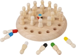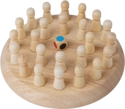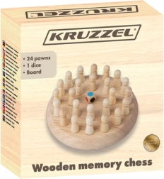 Houten geheugenschaak KRUZZEL is een slimme variant op het klassieke bordspel. Het doel is om op basis van de worp van de dobbelsteen de juiste pionnen te vinden en hun positie te onthouden. Zo versterken spelers hun geheugen, logisch denken en concentratie. Dankzij de stevige houten afwerking gaat het spel lang mee en voelt het prettig aan.
