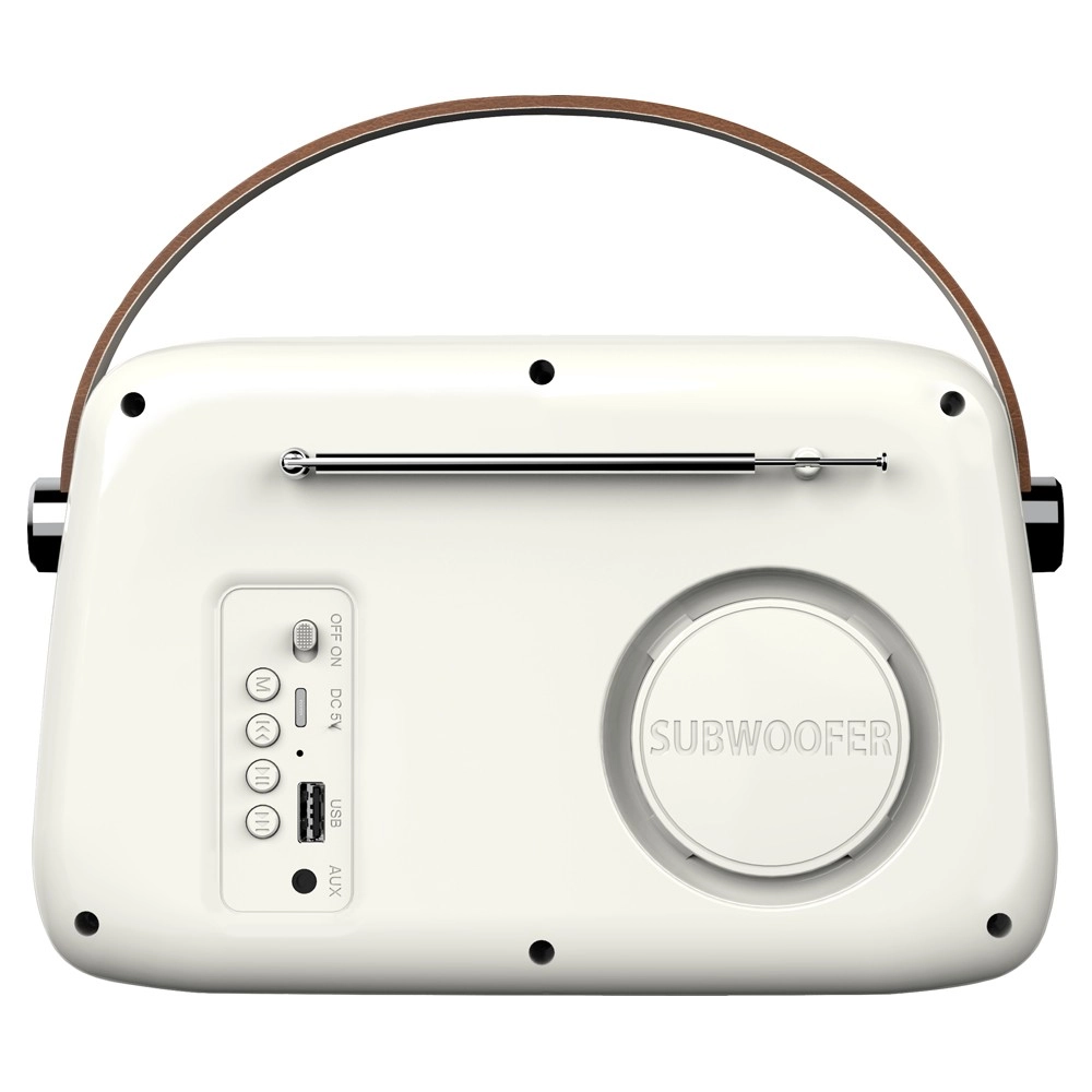 Geniet overal van je favoriete zenders en afspeellijsten. Deze lichte radio combineert tijdloos retrodesign met praktische functies: analoge FM-afstemming, betrouwbare Bluetooth 5.3 en veelzijdige AUX. De ingebouwde batterij zorgt voor tot 6 uur luisteren, eenvoudig op te laden via de moderne USB‑C-aansluiting.