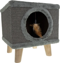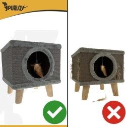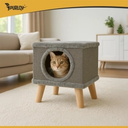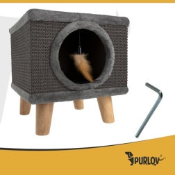 Zoekt u een compact en modern oplossing voor uw kat? Het PURLOV kattenhuis biedt een gezellige schuilplek met een zachte binnenzijde en tegelijk een duurzaam krabgedeelte van natuurlijke sisal aan de zijkanten. De verhoogde uitvoering op stevige houten poten garandeert stabiliteit, zelfs bij wild spel, terwijl antislip doppen de vloer beschermen.