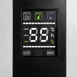 De geïntegreerde hygrometer, thermometer en hygrostaat tonen essentiële informatie op het overzichtelijke paneel. Touchbediening, afstandsbediening en een timer van 1–24 uur maken een precieze instelling mogelijk. Het praktische uitneembare 2 l reservoir, automatische uitschakeling bij volle tank en de optie voor permanente afvoer met slang garanderen zorgeloos gebruik.