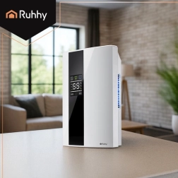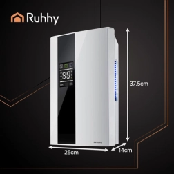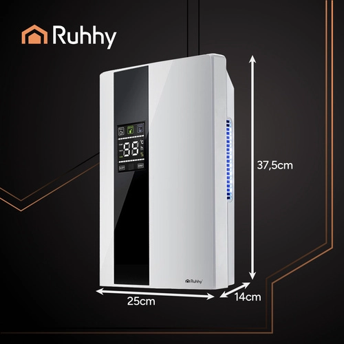RUHHY combineert effectieve ontvochtiging met luchtreiniging via UV, waardoor vocht, geuren en zware lucht in badkamer, keuken, slaapkamer of kelder eenvoudig worden aangepakt. Dankzij de Peltier‑technologie werkt het energiezuinig (90 W) en stil, terwijl automatisch ontdooien (Defrost) en de SLEEP‑modus het dagelijks gebruik nog comfortabeler maken.