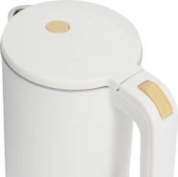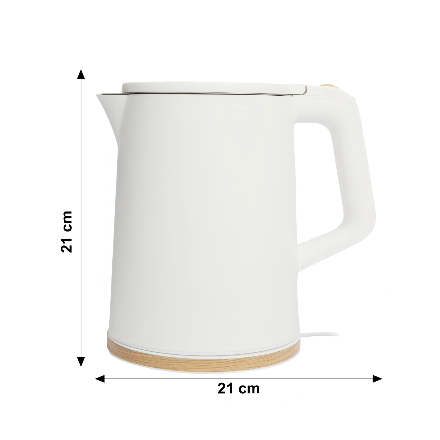 De roestvrijstalen binnenkan zorgt voor corrosiebestendigheid en eenvoudig schoonmaken, terwijl de dubbele wand de isolatie verbetert en het oppervlak koeler aanvoelt. Veiligheidsfuncties zoals automatische uitschakeling na het koken en droogkookbeveiliging beschermen jou en het apparaat. Praktische details zoals een knop in het handvat om het deksel te openen, een controlelampje en een interne peilaanduiding verhogen het gebruiksgemak bij dagelijks gebruik.