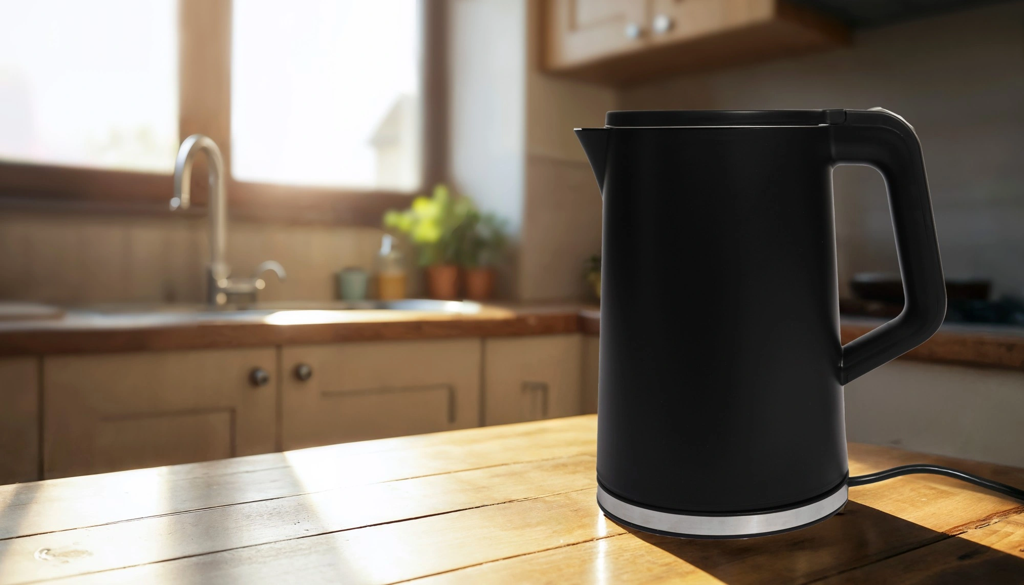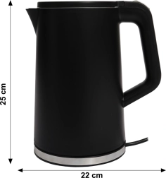 Geniet overal van snel en comfortabel water verwarmen – in het vakantiehuis, op kantoor of in een kleine keuken. De waterkoker met 1500 W vermogen zorgt voor razendsnel koken, het moderne zwarte design past in elk interieur en de dubbelwandige behuizing is beter geïsoleerd en prettig om aan te raken.