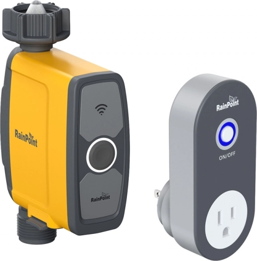 De duurzame behuizing met IP54 beschermt tegen stof, spatwater en uv-straling. Het ingebouwde filter verwijdert onzuiverheden en weerstaat hoge druk, terwijl het afgedichte batterijvak indringen van vocht voorkomt. De meegeleverde Wi‑Fi-hub breidt het systeem uit met extra apparaten en fungeert ook als slimme stekker.