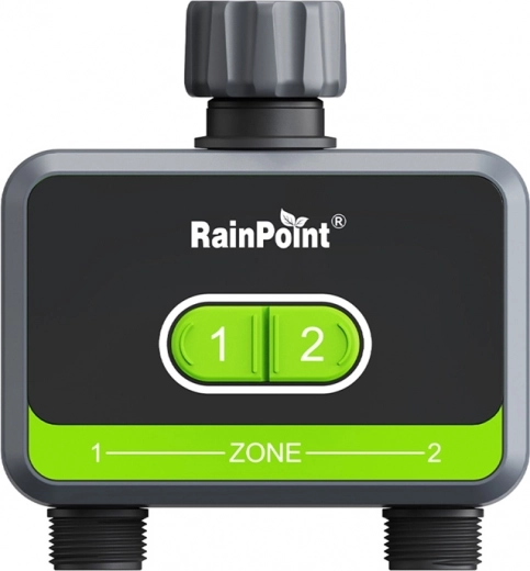 Maak van irrigatie kinderspel met de slimme RainPoint-timer voor twee zones. Biedt app-bediening, tot 6 irrigatieschema’s, twee modi (sproeiers en interval/nevel), IP54-bestendigheid en batterijvoeding. Dankzij de Smart Hub en de weersvoorspelling in de app pas je het schema eenvoudig aan de actuele omstandigheden aan en blijft je tuin altijd fris.