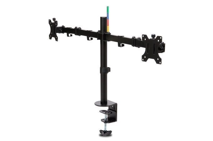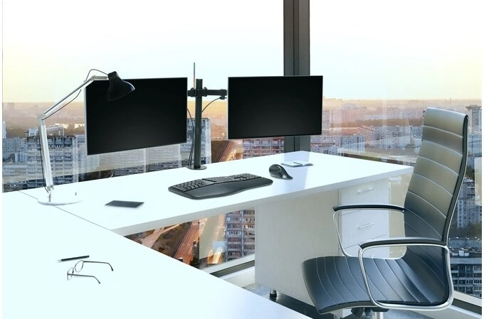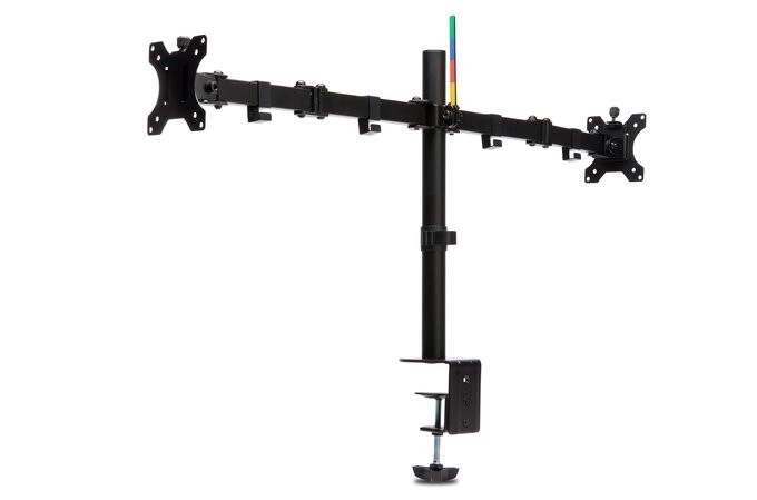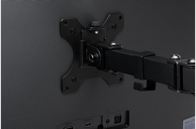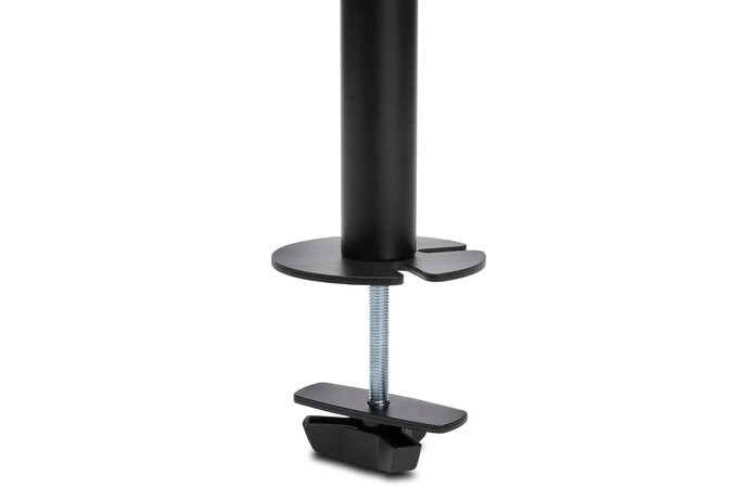 De robuuste staal-aluminium constructie wordt aan de rand van het bureau gemonteerd met een C-klem of doorvoer, waardoor je ruimte bespaart en het blad niet wordt bekrast. Elke arm draagt een monitor tot 32" en 8 kg en biedt soepele, precieze verstelling voor een ideale positie in elke werkomgeving.