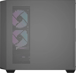 Koeling is klaar voor hoge prestaties: tot 10x 120mm ventilatoren (of 2x 140 mm boven) en ondersteuning voor waterkoeling met 240/360 mm radiatoren. Af fabriek krijg je 4 ARGB-ventilatoren voor efficiënte luchtstroming en aantrekkelijke verlichting. Stoffilters en doordachte airflow helpen het interieur schoon te houden.