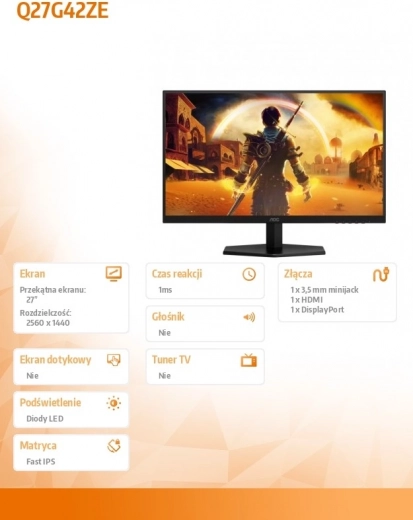 Ervaar vloeiend gamen en een haarscherp beeld met de Q27G42ZE monitor van 27". Het Fast IPS-paneel biedt een verversingssnelheid van 240 Hz, snelle responstijden en natuurgetrouwe kleuren. Dankzij de ingangen HDMI en DisplayPort sluit je eenvoudig zowel pc als console aan.