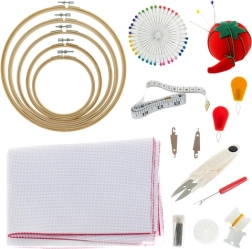 De set is ideaal als cadeau of voor het inrichten van je thuisatelier. De praktische opbergtas houdt alles op zijn plek en de verschillende maten bamboe borduurringen maken werken aan kleine en grotere motieven makkelijker.