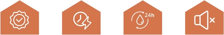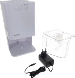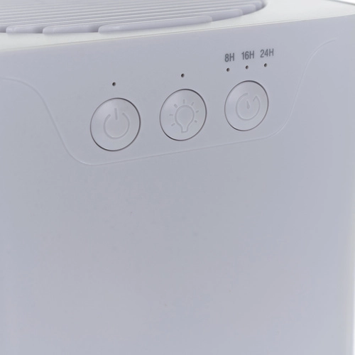 De praktische timer van 8/12/16 uur past de werking aan jouw schema aan en het 7-kleuren LED-licht creëert een prettige atmosfeer. Met een capaciteit van 380 ml/dag (30 °C, 80% RV) kan het apparaat 3–4 dagen werken zonder te hoeven legen. Dankzij het Peltier-systeem is het onderhoud minimaal, het geïntegreerde handvat maakt verplaatsen eenvoudig en de afneembare achterrooster en uitneembare tank versnellen het reinigen.