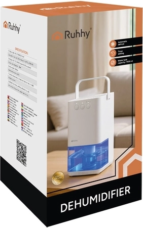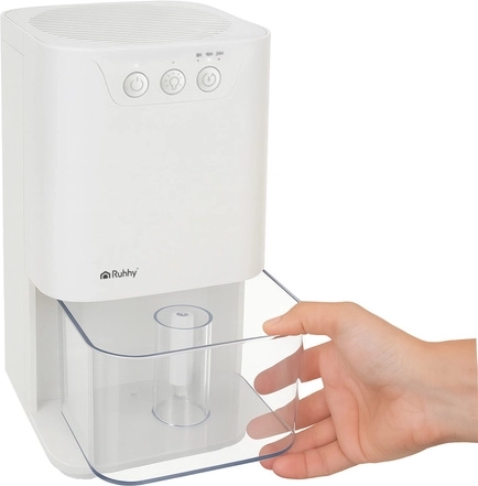 Houd elke dag een gezond en fris binnenklimaat. De RUHHY-luchtontvochtiger is een moderne, compacte en eenvoudig te bedienen hulp voor in huis, op kantoor en in kleinere ruimtes zoals een kleedkamer of voorraadkast. De stille en energiezuinige werking is ideaal voor de slaapkamer en werkkamer, terwijl het grote 1400 ml-reservoir met automatische uitschakeling bij volle tank zorgt voor veilig en zorgeloos gebruik.