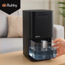 Houd elke dag een gezond binnenklimaat. De RUHHY-ontvochtiger is modern, eenvoudig te bedienen en uitzonderlijk stil, waardoor hij ideaal is voor de slaapkamer, kantoor, studentenkamer en kleinere ruimtes zoals een kleedkamer of voorraadkast. Capaciteit 380 ml/dag en een reservoir van 1400 ml betekenen minder vaak legen – gerust 3–4 dagen.