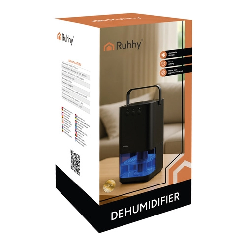 Het apparaat gebruikt een Peltier-systeem voor effectieve ontvochtiging zonder compressor, met laag verbruik (slechts 36 W) en minimale geluidsproductie. Automatische uitschakeling bij vol reservoir voorkomt overlopen en de 8/12/16 uurs timer past de werking aan jouw ritme aan. De sfeervolle 7-kleurige LED en de verlichte tank geven het interieur een prettige ambiance.