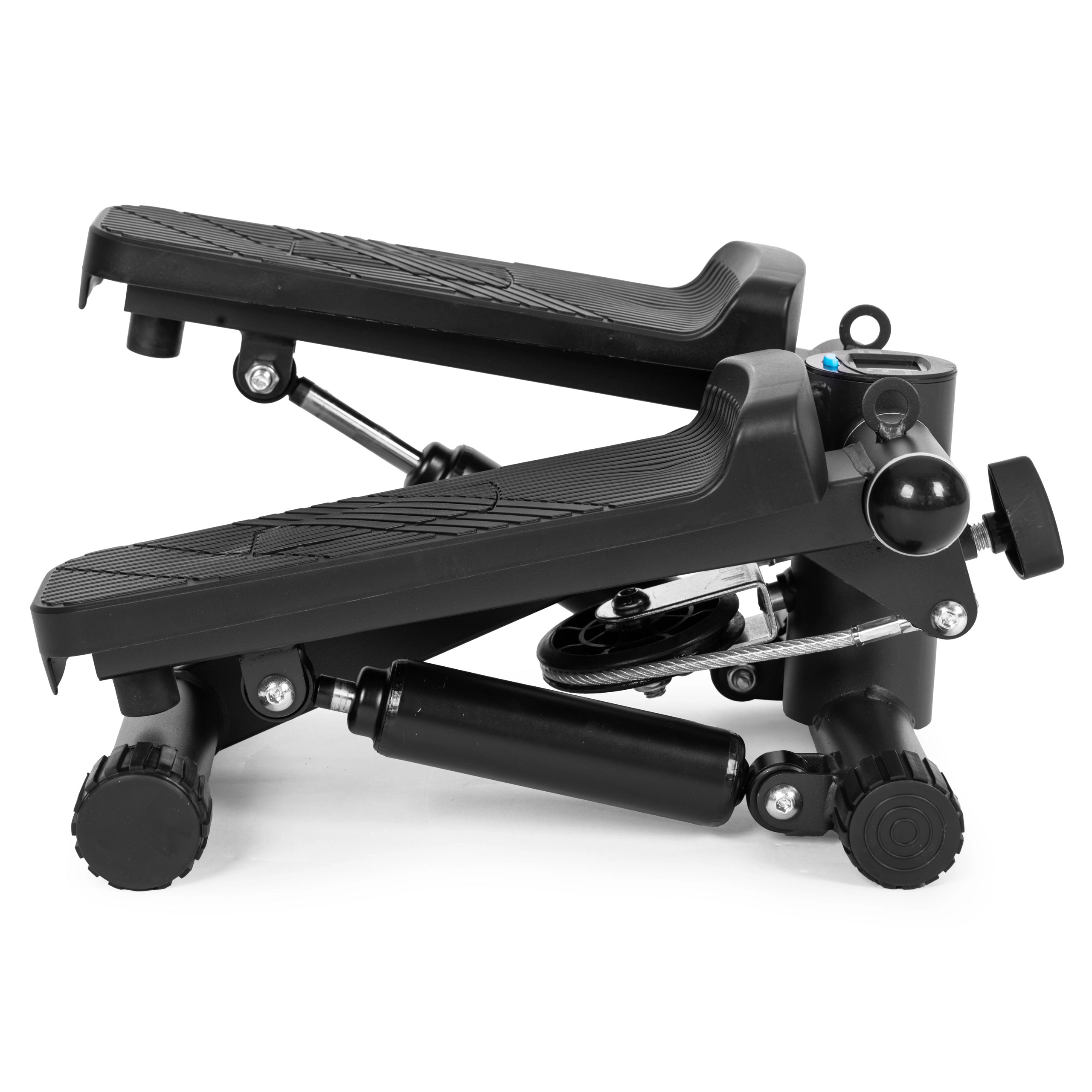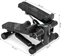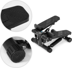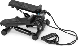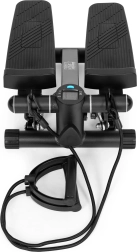 Compacte stepper met weerstandsbanden voor thuistraining waarmee je effectief de onder- én bovenlichaamsspieren kunt versterken, je conditie verbeteren en calorieën verbranden. Robuuste constructie van staal, ABS en TPE, antislippedalen, instelbare intensiteit en een 5‑functies LCD‑display om tijd, stappen en calorieën te volgen. Inclusief beschermende onderlegger en stabiele pootjes voor veilig trainen op elk oppervlak.