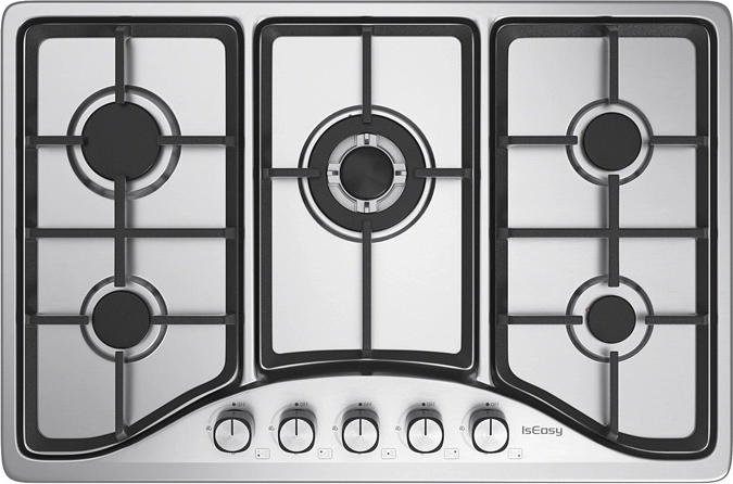 Geniet van maximale vrijheid tijdens het koken met de IsEasy kookplaat, die een moderne roestvrijstalen look combineert met praktische functionaliteit. Vijf branders met verschillende vermogens kunnen alles aan, van delicate sauzen tot snel roerbakken. Gietijzeren pannendragers houden kookgerei stabiel en het 201 roestvrijstalen paneel is corrosiebestendig en gemakkelijk schoon te maken.