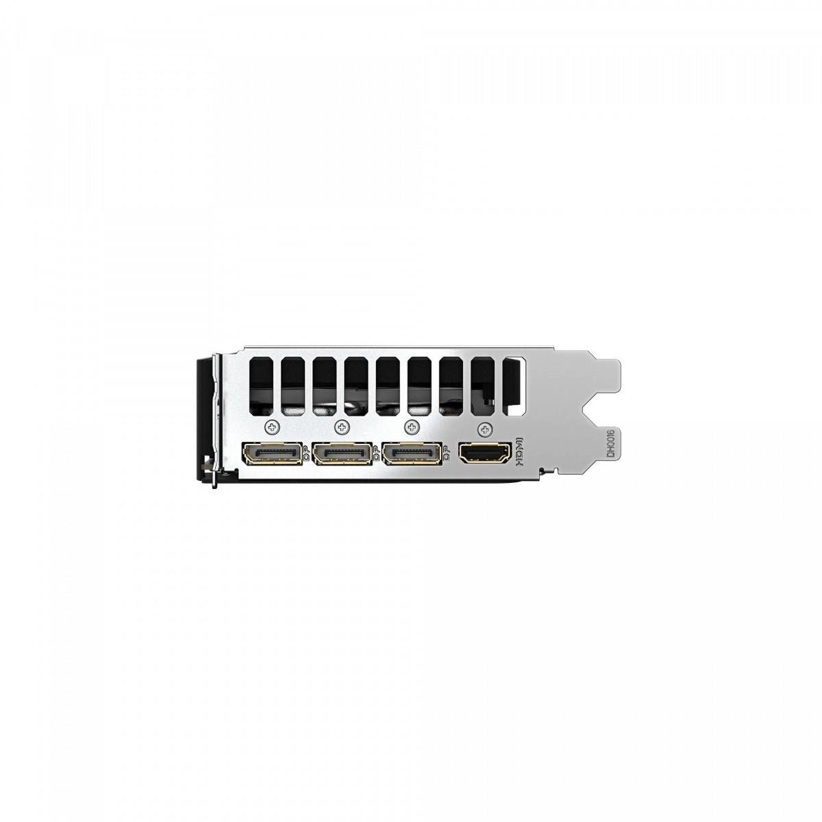 Gebogen contouren en gesegmenteerde lijnen benadrukken de futuristische look. De metalen backplate aan de achterzijde verstevigt de kaart en verbetert de passieve koeling.