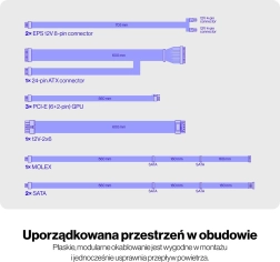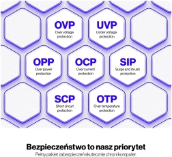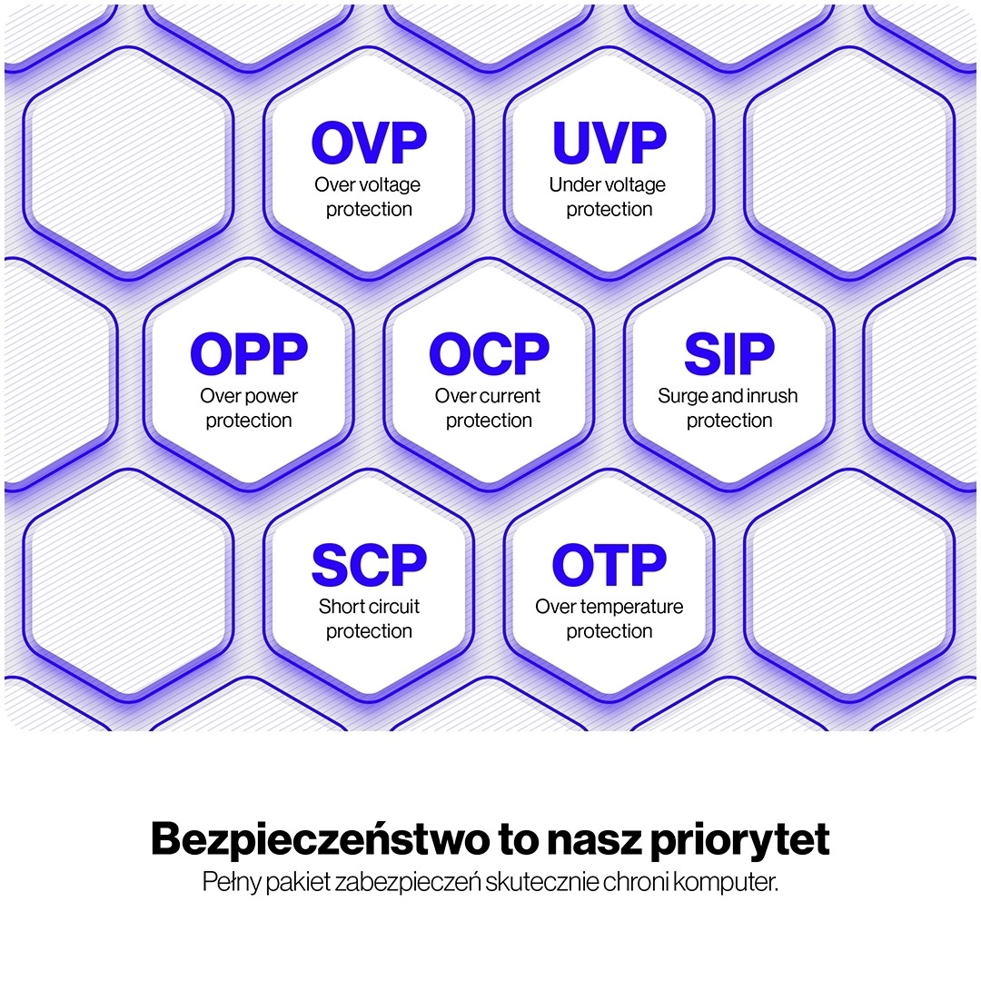 De gebruikte Japanse condensatoren (105 °C) garanderen stabiliteit onder veeleisende omstandigheden. Volledig modulaire bekabeling vereenvoudigt cable management, verbetert de luchtstroom en verlaagt de temperaturen. Het pakket met elektrische en thermische beveiligingen beschermt je pc tegen overbelasting, overspanning, kortsluiting en oververhitting. De kwaliteit wordt onderstreept door 10 jaar garantie.