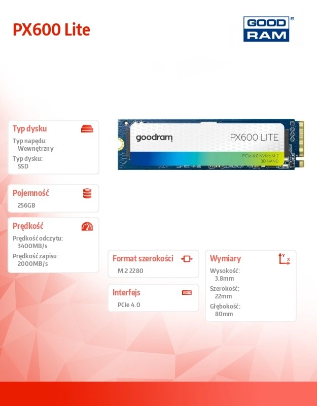 De PX600 Lite is een ideale keuze voor snelle systeemsstarts, vlotte app-laadtijden en soepel gamen. Dankzij de NVMe PCIe 4.0 x4-interface en het M.2 2280-formaat past hij eenvoudig in de meeste moderne apparaten en levert hij een merkbare prestatieboost ten opzichte van klassieke SATA-SSD’s.