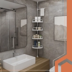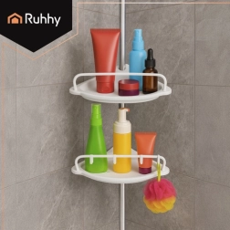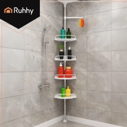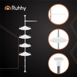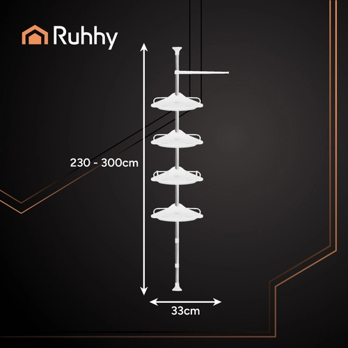 Het praktische RUHHY-hoekrek biedt een slimme oplossing voor kleine en grote badkamers. Dankzij de telescopische constructie past het zich eenvoudig aan de ruimte aan en klemt het stevig tussen vloer en plafond. Zonder boren, zonder rommel – ideaal voor in de douche of naast het bad.
