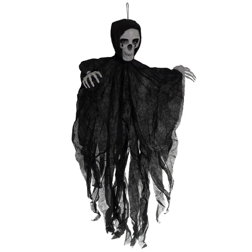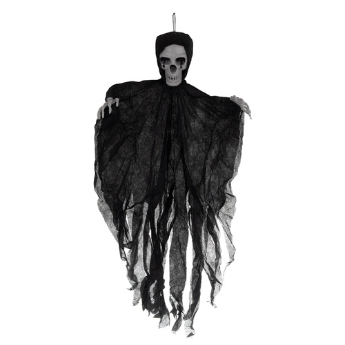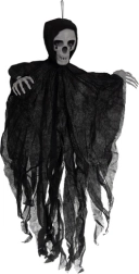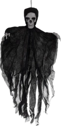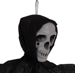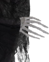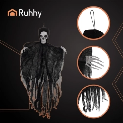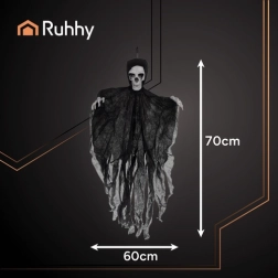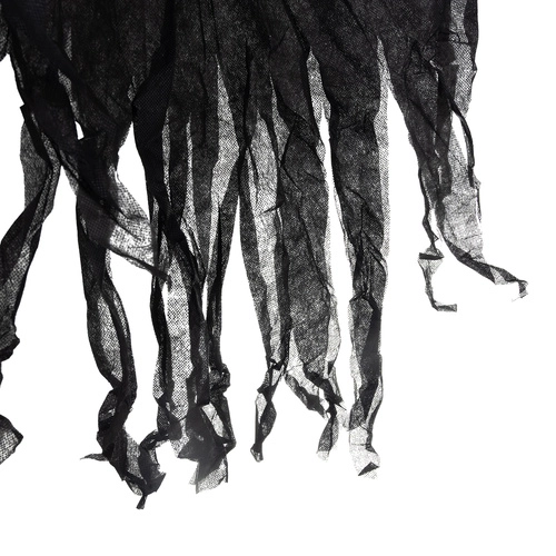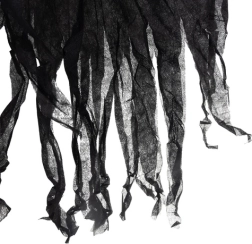 Maak in een oogwenk een indrukwekkende Halloween-setting. Het hangende RUHHY-skelet in zwart biedt een realistische look, laag gewicht en eenvoudig ophangen dankzij de lus. De verscheurde textiel beweegt sierlijk mee met de luchtstroom en versterkt het enge effect.