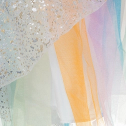 Verander een kleine prinses in een magisch wezen met dit charmante eenhoornkostuum. De glinsterende tule met gouden sterretjes, de gouden vleugels en de diadeem met hoorn zorgen voor een WOW-effect dat meteen in het oog springt. Het kostuum is ontworpen voor comfortabel dragen de hele dag door en is geschikt voor kinderen van ongeveer 4–6 jaar.