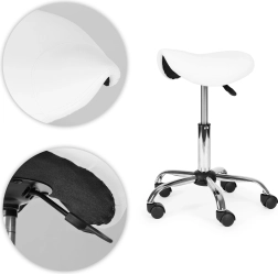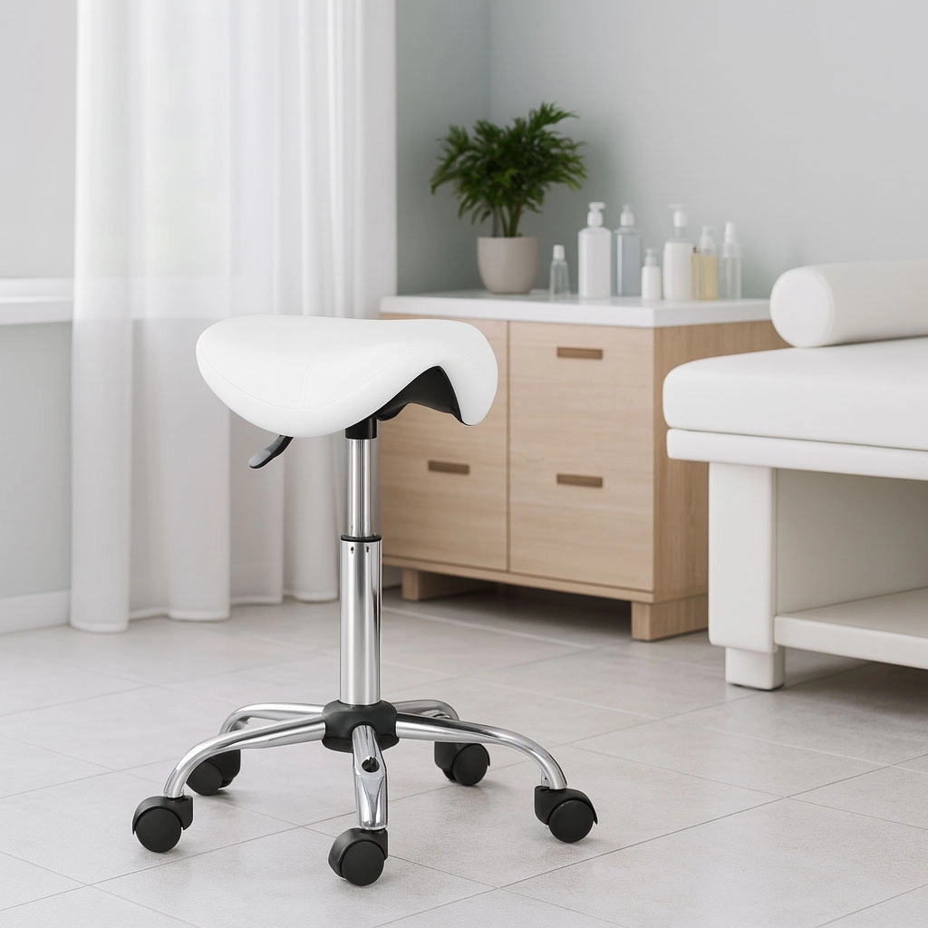 Zoekt u een comfortabele en betrouwbare zitoplossing voor dagelijks werk? De draaibare zadelkruk MODERNHOME is ideaal voor schoonheidssalons en kappers, medische praktijken, massages en tattoostudio’s. Het ergonomische zadel ondersteunt een correcte lichaamshouding, verlicht de onderrug en bevordert een gezonde zithouding bij langdurig zitten.