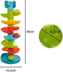Laat kinderen de vreugde van beweging en geluid ontdekken met de kleurrijke ballentoren met spiraalglijbaan. Laat een bal bovenin vallen en kijk hoe hij met een vrolijk rammelend geluid naar beneden rolt – een eenvoudig maar zeer vermakelijk interactief spel dat lang blijft boeien.