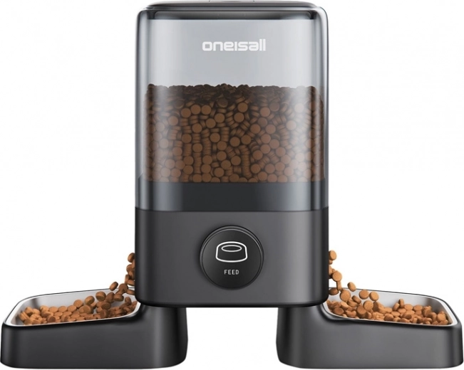 De ONEISALL PF09 is een praktische voerautomaat, ontworpen voor huishoudens met twee huisdieren. De grote capaciteit van 5 l (ca. 2,3 kg brokjes) is voldoende voor ongeveer 10 dagen voor 2 katten, de transparante opslag maakt het controleren van de inhoud eenvoudig en de doordachte dubbele voerbakken op 40 cm afstand verminderen stress en concurrentie tijdens het eten.