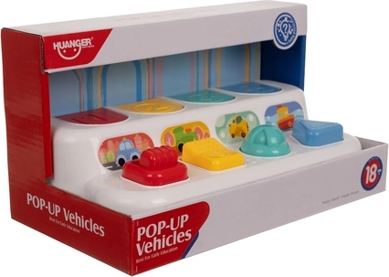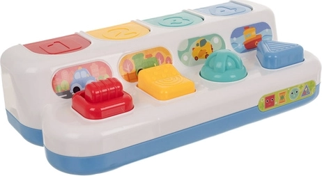 Dit interactieve pop-up speelgoed is ideaal voor de eerste ontdekkingen in de wereld van techniek en beweging. Door op de knoppen te drukken activeren kinderen de verborgen voertuigen die uit de kleurrijke basis opspringen – een eenvoudige en boeiende manier van spelenderwijs leren. De compacte afmetingen maken dragen en opbergen gemakkelijk en het speelgoed is perfect voor zowel tafel als vloer.