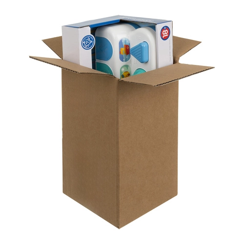 - Speelgoed, gebruiksaanwijzing, kleurrijke verpakking, bruine verzenddoos
