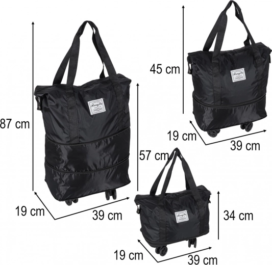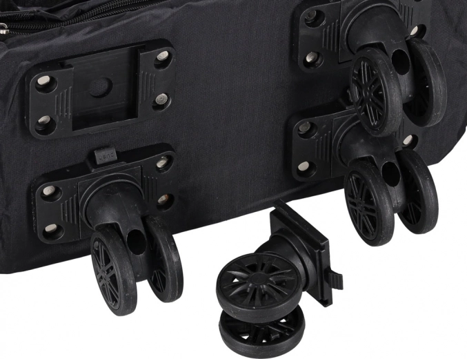 Deze lichte maar duurzame reistas combineert de flexibiliteit van een opvouwbare constructie met het rijcomfort van wielen. Het waterafstotende Oxford‑materiaal beschermt de inhoud tegen regen en vuil, terwijl de kwaliteitsrits en de verstevigde binnenzijde zorgen voor een lange levensduur. Drie uitklapstanden laten je de capaciteit afstemmen op je actuele behoeften.