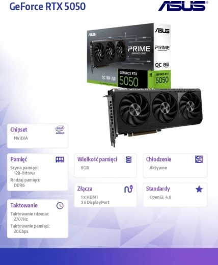 Geniet van topprestaties met de GeForce RTX 5050 Prime 8GB OC GDDR6 videokaart. Het compacte 2,5-slots ontwerp zorgt voor brede compatibiliteit met de meeste behuizingen, terwijl het triple-fansysteem uitstekende luchtstroom en uitmuntende koeling biedt bij zowel gamen als veeleisende contentcreatie.