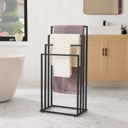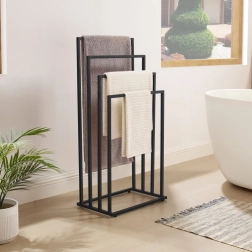Houd de badkamer perfect geordend met het rek met vier niveaus voor gescheiden ophangen. De open constructie zorgt voor betere luchtcirculatie en daarmee sneller drogen van handdoeken, badkleding of wasgoed. Het minimalistische design in matzwart past perfect in moderne interieurs.