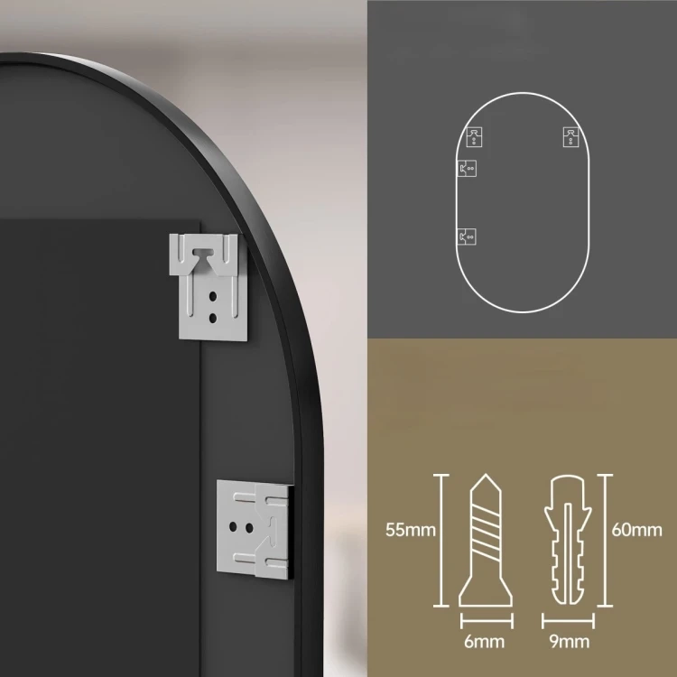Achterop zijn stevige metalen ophangbeugels voorzien voor een veilige wandmontage. In de doos vind je ook een montageset, zodat je de spiegel eenvoudig kunt installeren zonder extra accessoires aan te schaffen. Het hoogwaardige 4 mm spiegelglas zorgt voor een heldere en scherpe reflectie.