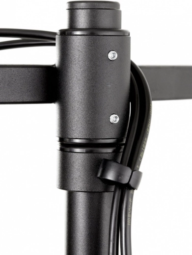 Praktische clips houden de kabels netjes langs de kolom en armen geleid, zodat je bureau schoon en opgeruimd blijft.