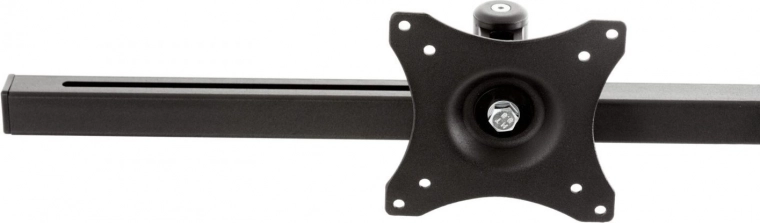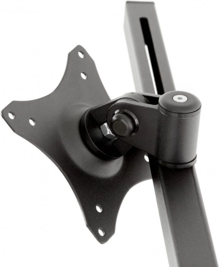 VESA 75×75 en 100×100 met verstelbare armen maakt snelle montage en nauwkeurige positionering van de monitoren mogelijk.