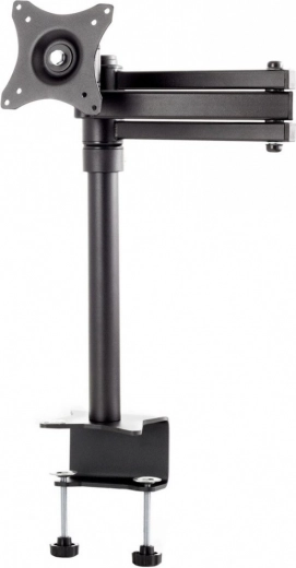 De dubbele arm met meerdere scharnieren maakt snel draaien, kantelen en uitschuiven van de monitor mogelijk. Dankzij de compatibiliteit met VESA 75×75 en 100×100 is de installatie eenvoudig en snel. Er is ook kabelbeheer inbegrepen om de werkplek overzichtelijk en esthetisch te houden.