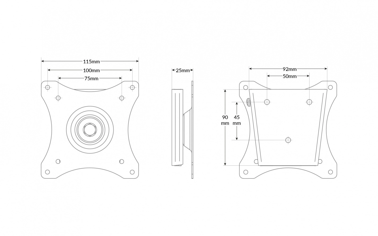 De beugel is compatibel met VESA 75x75 en 100x100 en draagt apparaten tot circa 10 kg. Er is beveiliging tegen afnemen in de vorm van een borgschroef. Dankzij het eenvoudige bevestigingssysteem kan de installatie door één persoon worden uitgevoerd.