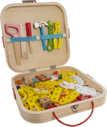 Alle onderdelen zijn zorgvuldig glad afgewerkt en gekleurd met niet-giftige verven. Dankzij de multiplex koffer met metalen sluiting en touwhandvat blijft alles overzichtelijk en klaar voor onderweg. De set is een ideaal cadeau voor jongens en meisjes en is conform Europese normen.