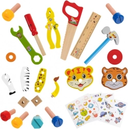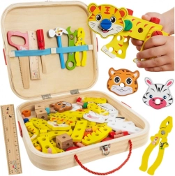Deze uitgebreide set combineert spelen en leren. Met de zaag, hamer, schroevendraaier en tang schroeven, verbinden en monteren kinderen kleurrijke onderdelen tot vrolijke dieren en voertuigen. Stimuleert coördinatie, precisie en ruimtelijk inzicht en leert tegelijk de basis van construeren.