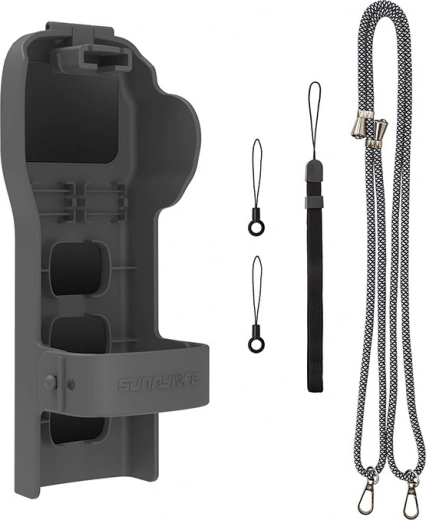 Binnenin vind je magnetische plaatsen voor filters (originele DJI, groothoeklenzen en Sunnylife-filters) en sleuven voor microSD-kaarten zonder magneten. De set bevat ook een koord en een verstelbare nekriem, waardoor je de camera altijd bij de hand hebt en klaar voor actie – de hoes opent met één enkele beweging.
