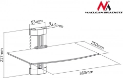 Maclean MC-663 is een kwalitatieve wandplank met 5 mm gehard glas die uw multimedia-apparatuur veilig en binnen handbereik houdt. Het minimalistische design met zwart glas past perfect bij moderne tv’s en interieurs.