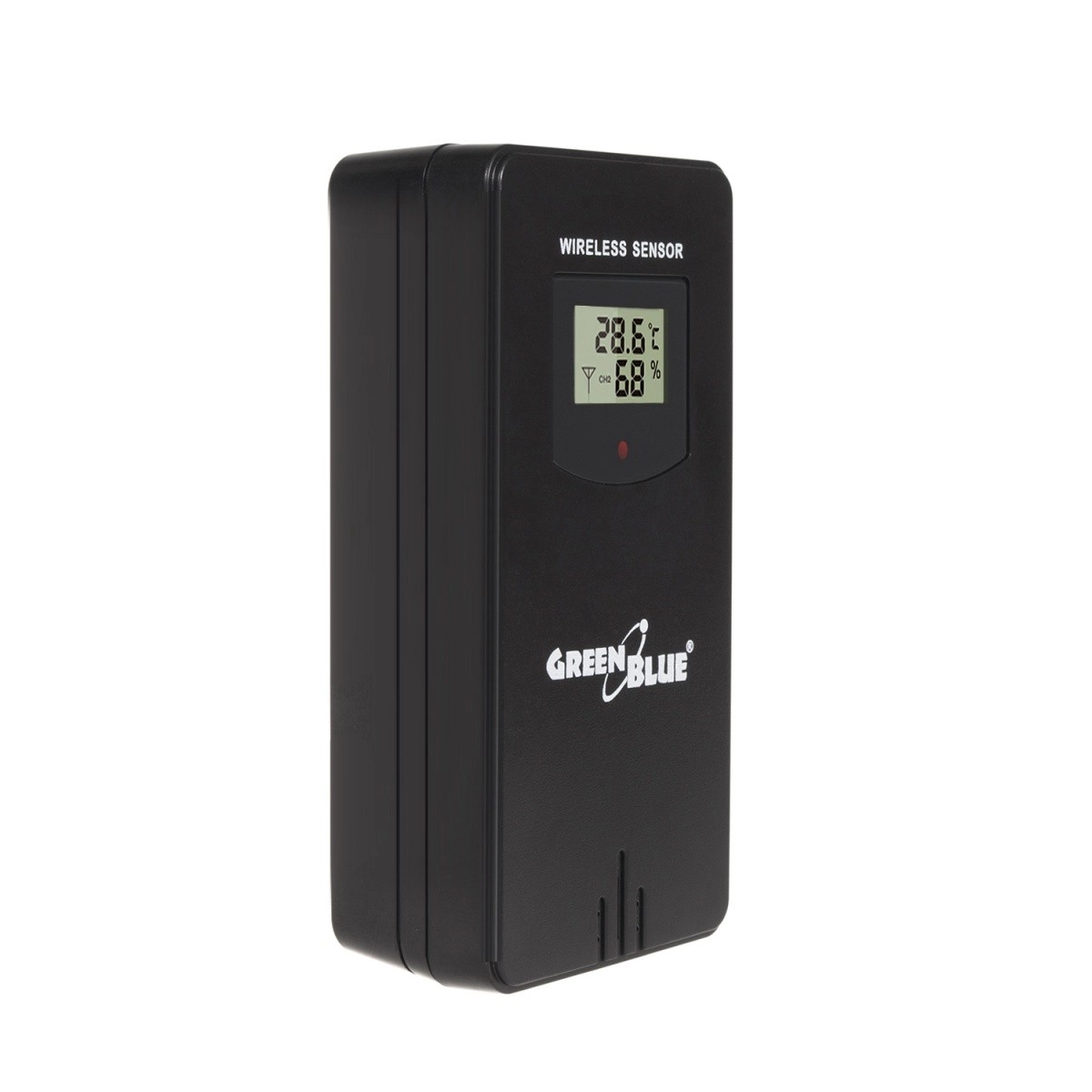 De compacte buitensensor meet temperatuur en vochtigheid en verzendt de waarden draadloos naar de hoofdunit over een afstand tot ca. 60 meter.