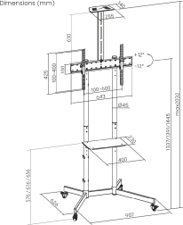 Onderdeel is een in hoogte verstelbare middenplank voor spelers, consoles of settopboxen (draagvermogen 5 kg) en een bovenste plank voor een camera – perfect voor videoconferenties en presentaties. Wielen met rem maken soepel verplaatsen tussen ruimtes mogelijk en zorgen voor stevige fixatie op de plek.