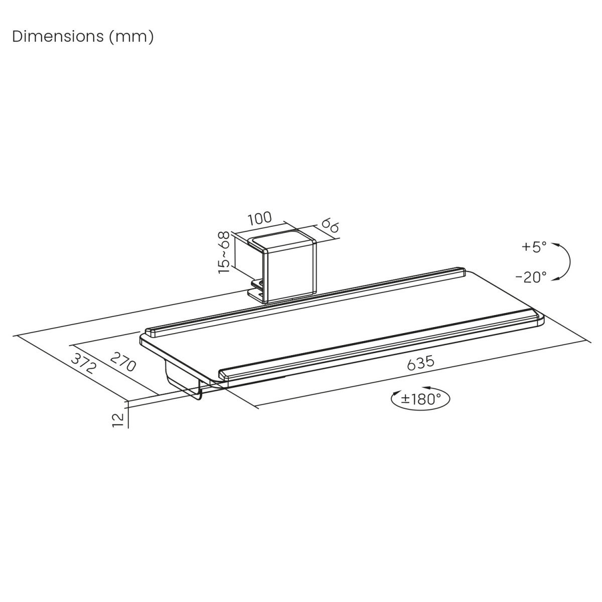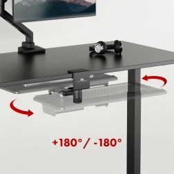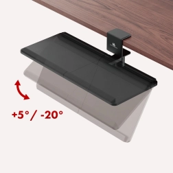 Verhoog het werkcomfort met de onderbouw toetsenbordhouder MC-108B, die met een stevige klembevestiging (clamp) zonder boren aan het bureaublad wordt bevestigd. Het ruime uittrekblad maakt plek vrij op het bureau, biedt een ergonomische plaatsing van het toetsenbord en een zijlade voor accessoires. Verhoogde randen voorkomen wegglijden van items en dankzij het meegeleverde montagemateriaal is de installatie snel gedaan.