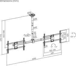 De professionele plafondsteun voor twee tv’s is ideaal voor kantoren, winkels, recepties, fitnesscentra en huishoudens waar ruimtebesparing en perfecte zichtbaarheid gewenst zijn. De robuuste stalen constructie zorgt voor stabiliteit, terwijl de precieze positionering comfortabel kijken vanuit elke hoek mogelijk maakt.