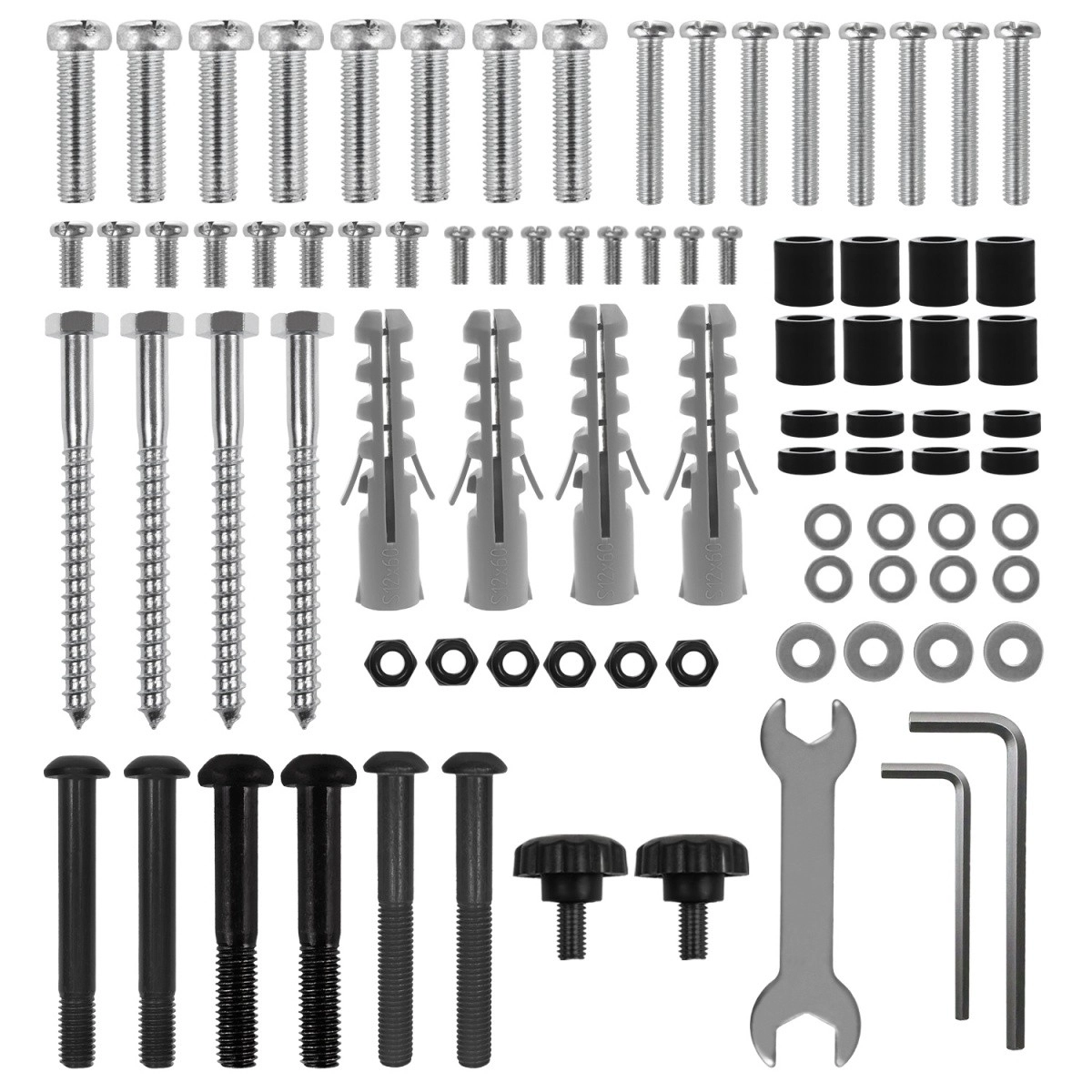 Verschillende schroeven, pluggen, afstandsringen en gereedschap maken een snelle en nette installatie mogelijk zonder extra accessoires aan te schaffen.