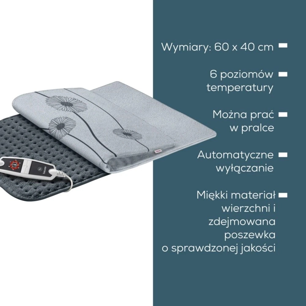 Het kussen is gemaakt van zacht, ademend materiaal dat prettig aanvoelt. Uw veiligheid wordt gewaarborgd door het Beurer-veiligheidssysteem met continue temperatuurbewaking en automatische uitschakeling na 90 minuten.