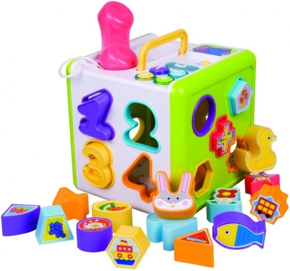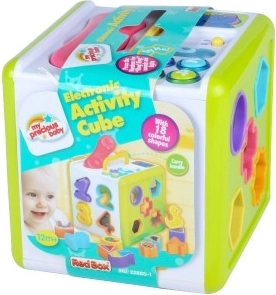 De kubus is uitgerust met licht- en geluidseffecten, die de speelervaring versterken en helpen bij de ontwikkeling van de zintuiglijke waarneming van het kind. Bovendien is het dankzij de praktische handgreep eenvoudig mee te nemen.